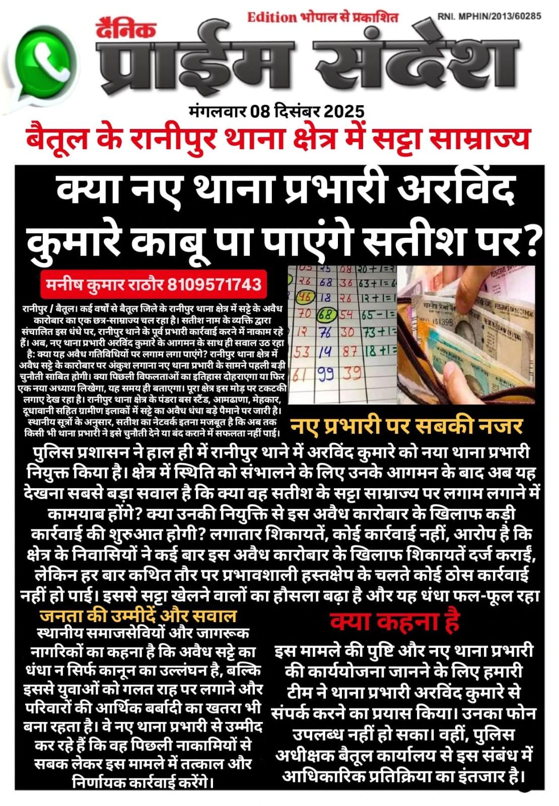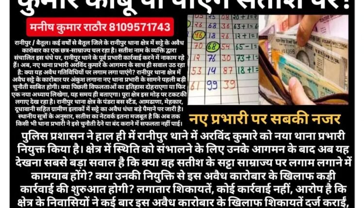 बैतूल के रानीपुर थाना क्षेत्र में सट्टा साम्राज्य: क्या नए थाना प्रभारी अरविंद कुमारे काबू पा पाएंगे सतीश पर?