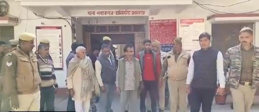 प्रयागराज: पुलिस आयुक्त महोदय व अतिरिक्त पुलिस आयुक्त के निर्देशन में अपराध एवं अपराधियों के विरुद्ध चलाये जा रहे अभियान के क्रम में श्रीमान् पुलिस उपायुक्त व अपर पुलिस उपायुक्त गंगानगर के पर्यवेक्षण में व सहायक पुलिस आयुक्त सोरांव के कुशल नेतृत्व में गंगानगर जोन के थाना नवाबगंज पर पंजीकृत मु0अ0सं0-538/2025 धारा-191(2)/191(3)/190/109(1)/115(2)/ 352/351(2)/324(4)/304(2) भा0न्या0सं0 से संबंधित 09 वांछित अभियुक्त 1. बीरेन्द्र कुमार शुक्ल पुत्र स्व0 प्यारेलाल शुक्ल 2. सच्चिदानंद शुक्ल पुत्र श्री राम कुमार शुक्ल 3. अशोक कुमार शुक्ल पुत्र रामकुमार शुक्ल 4.अनमोल शुक्ला पुत्र सच्चिदानन्द शुक्ला 5. आदित्य शुक्ला पुत्र बीरेन्द्र कुमार शुक्ला 6. यज्ञ नारायण शुक्ला पुत्र अवध नारायण शुक्ला 7. प्रेमशंकर शुक्ला पुत्र अवध नारायण शुक्ला 8. शिवशंकर शुक्ला पुत्र अवध नारायण शुक्ला 9. रामकुमार शुक्ला पुत्र स्व0 राम बचन शुक्ल निवासीगण ग्राम झोखरी आदमपुर थाना नवाबगंज कमिश्नरेट प्रयागराज को थाना नवाबगंज पुलिस टीम द्वारा आज दिनांक-09.12.2025 को थाना नवाबगंज क्षेत्रान्तर्गत ग्राम आदमपुर झोखरी के पास से गिरफ्तार कर नियमानुसार अग्रिम विधिक कार्यवाही की गयी ।