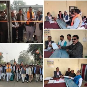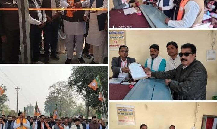 विगत 15 दिसंबर को नामांकन फॉर्म भरने के अंतिम दिवस जिला अध्यक्ष देव कुमार सिंह , क्षेत्रीय विधायक धौहनी कुंवर सिंह टेकाम के साथ पूरी जिला भाजपा जिसमें पूर्व जिला अध्यक्ष केके तिवारी, पूर्व जिला पंचायत अध्यक्ष राष्ट्रीय कार्य समिति सदस्य राजा मड़वास अभ्युदय सिंह राज, पूर्व नगर पालिका अध्यक्ष देवेंद्र सिंह मुन्नू, पूर्व भाजपा जिला अध्यक्ष व प्रदेश कार्य समिति सदस्य इंद्रशरण सिंह चौहान, जिला उपाध्यक्ष अखिलेश पांडे, शिवदान साकेत,जिला महामंत्री अनिल पांडेय ,चंद्रपाल सिंह उइके,लोरिक प्रसाद यादव, मंडल अध्यक्ष मझौली एंड प्रवीण तिवारी, उपाध्यक्ष भागवत गुप्ता के विशेष उपस्थिति में आरके पैलेस में सभा आयोजित कर हजारों कार्यकर्ताओं एवं समर्थकों के साथ तहसील कार्यालय मझौली पहुंच भाजपा पार्टी की ओर से लवकेश सिंह गहरवार का नामांकन दाखिल कराया। वही 16 दिसंबर को जिला अध्यक्ष देव कुमार सिंह चौहान व क्षेत्रीय विधायक धौहनी मझौली पहुंच नगर परिषद वार्ड क्रमांक 2 में रामचंद्र गुप्ता के घर भाजपा कार्यालय का उद्घाटन किया गया इस दौरान जिला अध्यक्ष व विधायक द्वारा पार्टी नेता व कार्यकर्ताओ में जोश भरते हुए लगनशीलता और कर्तव्य निष्ठा के साथ प्रचार प्रसार जारी करने के लिए कहा गया।