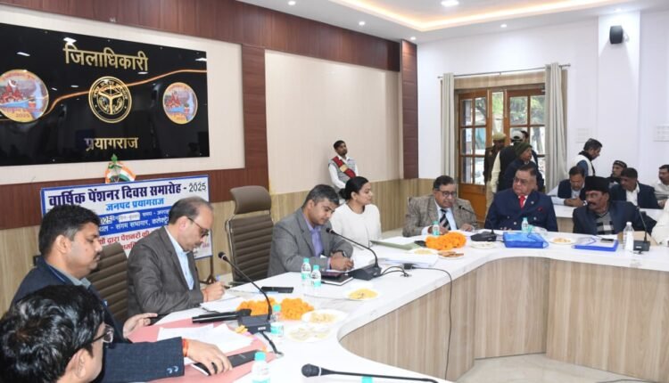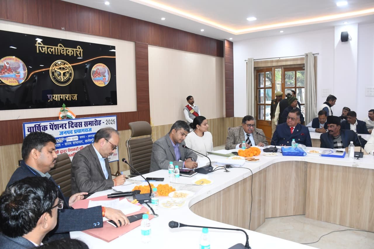 प्रयागराज: जिलाधिकारी मनीष कुमार वर्मा की अध्यक्षता में बुधवार को पेंशनर दिवस का आयोजन किया गया। कार्यक्रम में आयोजन के समन्यवक मुख्य कोषाधिकारी, श्री प्रत्यूष कुमार, श्रीमती आस्था तिवारी, संयुक्त/अपर निदेशक कोषागार एवं पेंशन प्रयागराज, वरिष्ठ कोषाधिकारी सिविल लाइंस इन्दिरा भवन श्री राजेन्द्र सिंह एवं कोषाधिकारी श्री नितेश मिश्र, श्रीमती दिव्या श्रीवास्तव तथा श्रीमती नीतू सिंह यादव वित्त एवं लेखाधिकारी बेसिक शिक्षा सहित अपर मुख्य चिकित्साधिकारी / आ०वि०अ० तथा जनपद के कार्यालयाध्यक्ष / उनके प्रतिनिधि, पेंशनर्स संगठन के पदाधिकारी, पेंशनर्स व कोषागार के कर्मचारी उपस्थित रहे।