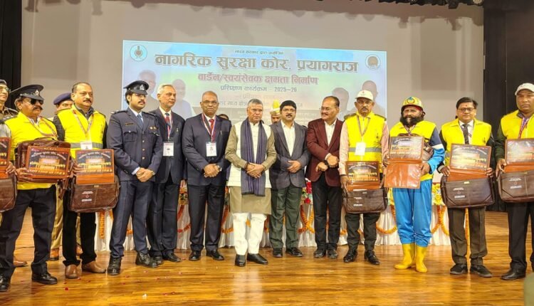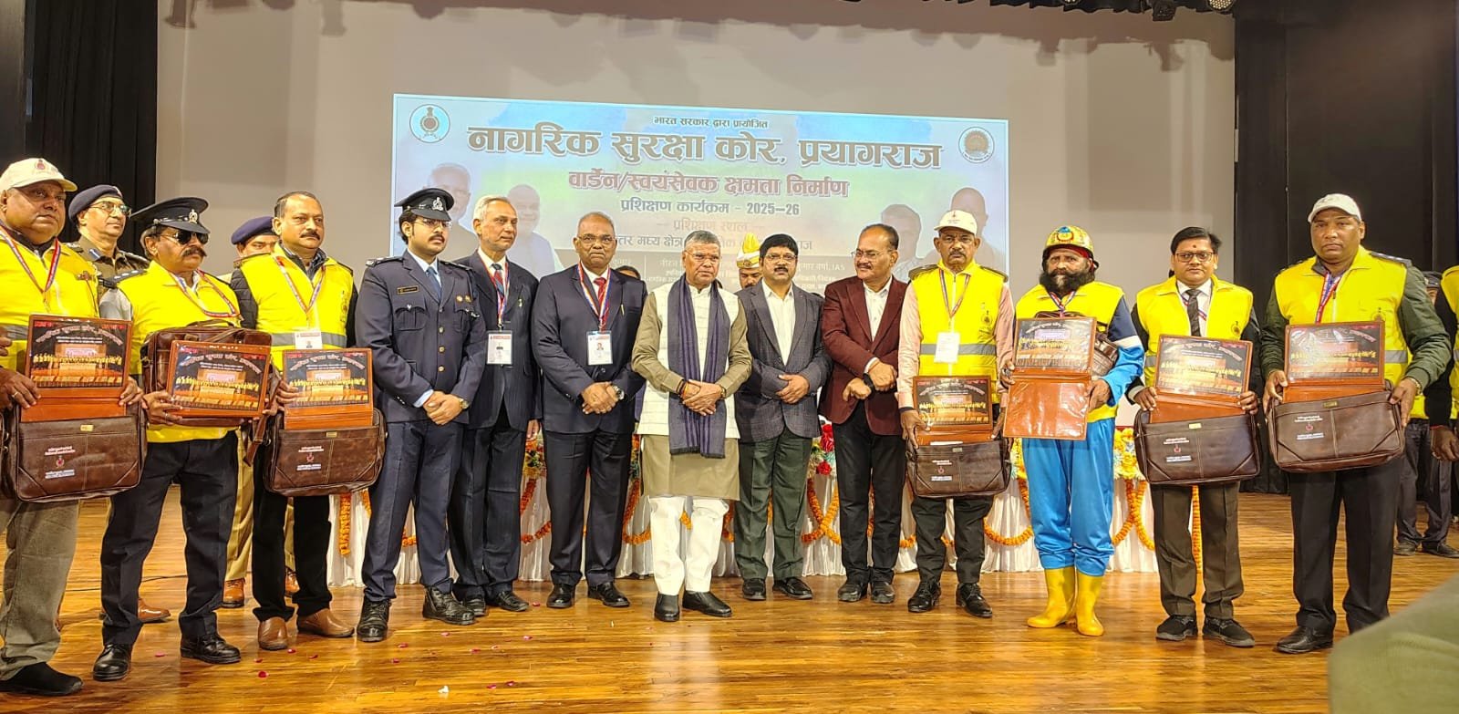 मंत्री जी का स्वागत पुष्प गुच्छ देकर चीफ वार्डन अनिल कुमार एवं डिप्टी चीफ वार्डन संजीव कुमार बाजपेई ने किया। प्रशिक्षण सत्र का संचालन नीरज मिश्रा उप नियंत्रक ने किया जिनके द्वारा अवगत कराया गया कि 15 दिसंबर 2025 से 22 दिसंबर 2025 तक प्रयागराज जनपद के 360 स्वयंसेवकों को उक्त प्रशिक्षण प्रदान किया जा रहा है जिसमें विभिन्न विषय विशेषज्ञों द्वारा उत्तर प्रदेश राज्य आपदा मोचन बल की टीम, अग्निशमन विभाग एवं स्वास्थ्य विभाग की टीम प्रशिक्षित कर रही है। धन्यवाद ज्ञापन चीफ वार्डन अनिल कुमार ने अपनी उद्बोधन से किया जिसमें उन्होंने मंत्री जी को विश्वास दिलाया कि महाकुंभ की भांति हमारी प्रशिक्षित नागरिक सुरक्षा टीम आगामी माघ मेला में भी पूरी तरह से जनहित में समर्पित रहेगी, निष्काम भाव से कार्य करेगी जिसमें वर्तमान में चलाया जा रहा नागरिक सुरक्षा आपदा प्रबंधन का प्रशिक्षण स्वयंसेवकों को उनके चरित्र निर्माण तथा प्रथम अनुकर्ता के रूप में समाज में कुशलता प्रदान करेगा ,कार्यक्रम में होमगार्डस विभाग के डीआईजी ,मंडलीय कमांडेंट तथा जिला कमांडेंट प्रयागराज रॅजीत सिंह ,चीफ वार्डन अनिल कुमार ,उप नियंत्रक नीरज मिश्रा ,डिप्टी चीफ वार्डन संजीव कुमार, स्वास्थ्य विभाग की टीम ,सहायक उप नियंत्रक राकेश कुमार तिवारी ,राहिला एजाज सहायक उप नियंत्रक, रौनक गुप्ता डिविजनल वार्डन, विभिन्न प्रखंडों के सहायक एवं समस्त डिवीजनल वार्डन के साथ 360 प्रतिभागी सदस्य स्वयंसेवकों ने प्रशिक्षण कार्यक्रम में प्रतिभाग किया।