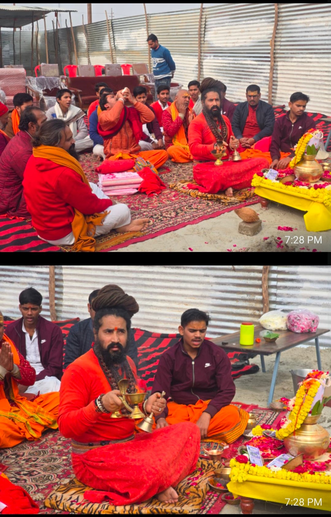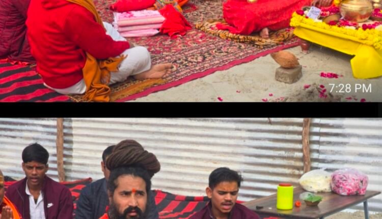 प्रयागराज: माघ मेले में प्रयागराज के बाघंबरी मठ के महंत बलबीर गिरी जी महाराज के शिविर के लिए सोमवार को भूमि पूजन किया गया। वैदिक मंत्रोच्चारण के साथ विधिवत पूजन-अर्चन के बाद आरती उतारी गई। भूमि पूजन के साथ ही शिविर स्थापना का कार्य भी शुरू कर दिया गया है।