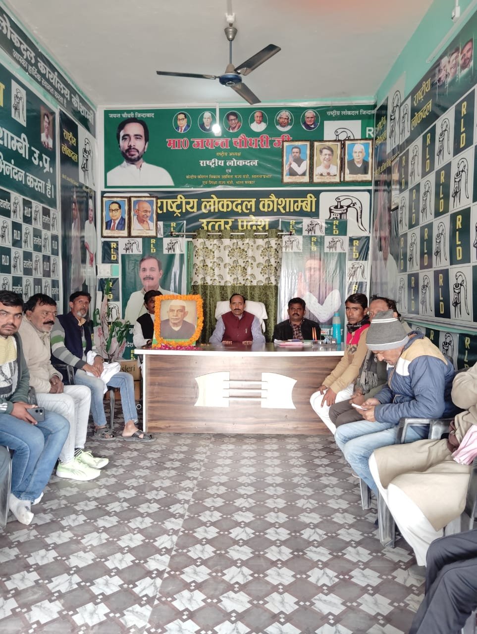 क्षेत्रीय महासचिव प्रयागराज नजमुल हसन ने कहा कि राष्ट्रीय लोकदल ही एक ऐसी पार्टी है जो किसानों मजदूरों के हित के लिए कार्य कर रही है किसने की पार्टी मात्र राष्ट्रीय लोकदल ही है उन्होंने कहा कि प्रत्येक कार्यकर्ता पार्टी की रीड़ हैं आने वाला समय राष्ट्रीय लोकदल का होगा और किसानों का होगा। कार्यक्रम की अध्यक्षता कर रहे जिला अध्यक्ष विनय पासी (एडवोकेट) ने कहा कि पार्टी को बूथ स्तर पर मजबूत बनाया जायेगा, पंचायत चुनाव मजबूती से राष्ट्रीय लोकदल लड़ेगी जो भी कार्य करता पदाधिकारी पंचायत चुनाव लड़ना चाहते हैं वह पार्टी कार्यालय में अपना आवेदन जमा कर दें। चौधरी चरण सिंह अमर रहे, चौधरी अजित अमर रहे चौधरी जयंत सिंह जिंदाबाद का नारा जोर शोर से लगा। कार्यक्रम में मुख्य रूप से प्रदेश महासचिव इमरान हैदर रिजवी, क्षेत्रीय महासचिव नजमुल हसन, जिला अध्यक्ष विनय पासी, जिला महासचिव गुलाम सिबतैन रविश जीशान हैदर पप्पू मछली, जिला महासचिव पूर्व सभासद करारी जीशान हैदर पप्पू मछली, पूर्व सभासद करारी असगर मदनी कुरैशी, जिला महासचिव हरिश्चंद्र मौर्य, चायल विधानसभा प्रभारी सुमन पासवान, राजेंद्र कुमार विधानसभा सिराथू प्रभारी, लाल चांद चंद्र जिला महासचिव, जिला महासचिव सिदलाल सरोज, जिला सचिव अब्दुल कवी, मुकेश कुमार सरोज सेक्टर उपाध्यक्ष, मोहम्मद शमन जिला उपाध्यक्ष, अनिल रही 12 ब्लॉक प्रभारी, धर्मराज सेक्टर अध्यक्ष सैकड़ो लोग मौजूद रहे।