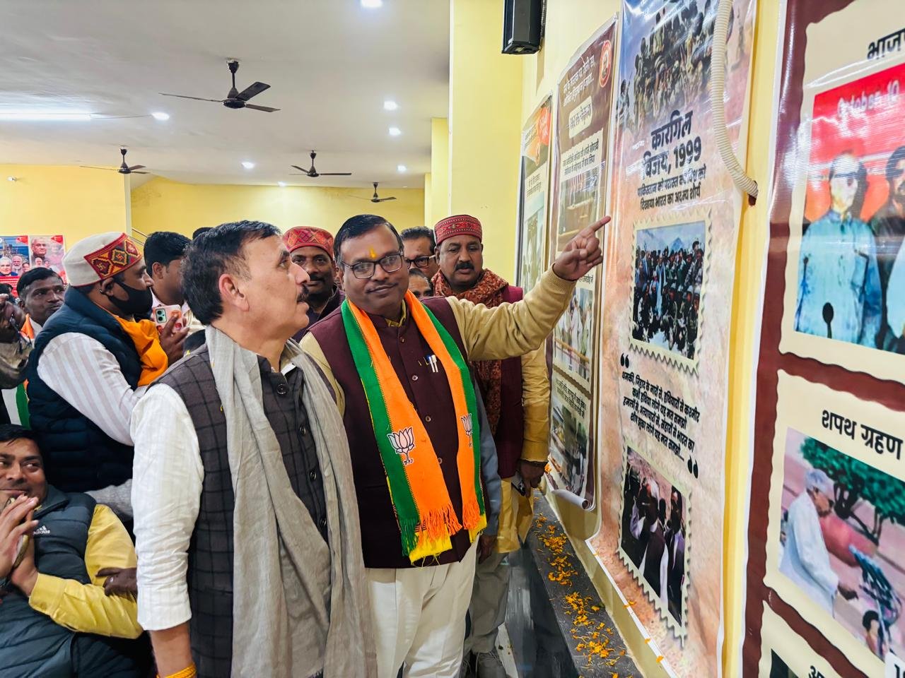 कौशाम्बी: भाजपा जिला कार्यालय में अटल जी के जीवन पर आधारित प्रदर्शनी का जिलाध्यक्ष धर्मराज मौर्य,निवर्तमान सांसद विनोद कुमार सोनकर ने फीता काट शुभारम्भ कर अवलोकन किया तत्पश्चात आयोजित समारोह को संबोधित किया।