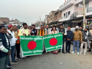 जिलाध्यक्ष धर्मराज मौर्य ने कहा कि बांग्लादेश खुलेआम अराजकता की ओर बढ़ रहा है,भारतीय राजनयिकों के दफ़्तर और घरों पर धावा बोल दिया है,और एक हिन्दू अल्पसंख्यक युवक को पेड़ से बांधकर जिंदा जलाकर उसकी हत्या कर दी गई साथ ही उसकी कड़ी निंदा करते हुए यह भी कहा कि दीपू चंद्र दास की हत्या केवल एक व्यक्ति की हत्या नहीं,बल्कि समाज की शांति सौहार्द और मानवता पर सीधा हमला है। ऐसी घटनाएं अल्पसंख्यकों में भय का माहौल पैदा कर रही हैं। बांग्लादेश में हिंदुओं का उत्पीड़न कतई बर्दाश्त नहीं किया जाएगा,क्योंकि वहां लगातार हिंदुओं की हत्याएं हो रही है और महिलाओं के साथ बलात्कार किया जा रहा है।