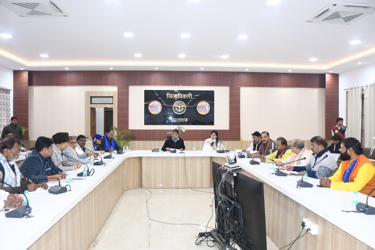 प्रयागराज: जिलाधिकारी श्री मनीष कुमार वर्मा की अध्यक्षता में शुक्रवार को संगम सभागार में मान्यता प्राप्त राष्ट्रीय एवं राज्यीय राजनैतिक दलों के प्रतिनिधियों की उपस्थिति में विधानसभा निर्वाचन क्षेत्रों की निर्वाचक नामावलियों का विशेष प्रगाढ़ पुनरीक्षण कार्यक्रम के सम्बंध में बैठक आयोजित की गयी। जिलाधिकारी ने बताया कि कुल 32,05,981 (90.78 प्रतिशत) मतदाताओं का डिजिटाइजेशन के अनुसार मैपिंग का कार्य दिनांक 26 दिसम्बर के सुबह 08ः00 बजे तक पूर्ण कर लिया गया है। जिलाधिकारी ने राजनैतिक दलों के प्रतिनिधियों से कहा कि आज डिजिटाइजेशन का लास्ट दिन है, आज सूची को फ्रीज कर दिया जायेगा। जिलाधिकारी ने कहा कि ड्राफ्ट इलेक्टोरल रोल का प्रकाशन 31 दिसम्बर को होगा।