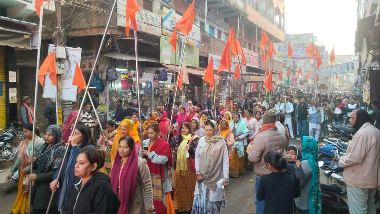 दतिया। सर्व हिंदू समाज द्वारा आज 29 दिसंबर 2025 सोमवार को भव्य चल समारोह का आयोजन किया गया। चल समारोह में हिंदू समाज के प्रत्येक वर्ग ने सहभागिता की। माताएं एवं बहने भी काफी संख्या में इस आयोजन में शामिल हुई। चल समारोह रिंग रोड भैरव मंदिर से प्रारंभ होकर राजगढ़ चौराहा, मुड़ियन का कुआं टाउन हॉल किला चौक तिगलिया होते हुए भैरव मंदिर पर समापन हुआ। इस दौरान स्थानीय किला चौक पर समस्त हिंदू समाज द्वारा भारत माता की आरती का भी आयोजन किया गया। यह आयोजन आगामी दिनों में होने वाले हिंदू सम्मेलन कार्यक्रमों को लेकर किया गया। समस्त हिंदू समाज द्वारा पूरे भारत देश में अलग-अलग दिनांकों पर हिंदू सम्मेलन कार्यक्रमो का आयोजन किया जा रहा है इसी क्रम में दतिया नगर में सात हिंदू सम्मेलन कार्यक्रमों का आयोजन किया जाना है। सबसे पहला हिन्दू सम्मेलन कार्यक्रम लाला का ताल, ठंडी सड़क क्षेत्र का 4 जनवरी 2026 को कान्हा गार्डन में आयोजित होगा। दूसरा हिंदू सम्मेलन कार्यक्रम न्यू हाउसिंग बोर्ड कॉलोनी, झांसी रोड, दिनारा रोड क्षेत्र का 10 जनवरी शुभारंभ गार्डन में आयोजित होगा।