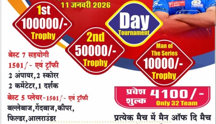 day डे ओपन चैलेंज टेनिस बॉल क्रिकेट टूर्नामेंट मेला ग्राउंड, शिवरीनारायण में 2 जनवरी से 11 जनवरी 2026 तक