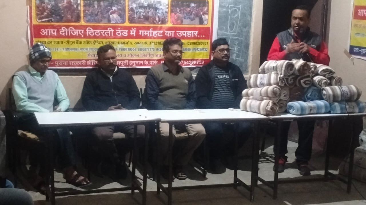 धामनोद । साल के अंतिम दिन 31 दिसंबर की रात्रि लोग नव वर्ष के आगमन को जश्न मनाते है । परन्तु नगर की एक मात्र संस्था मां अन्नपूर्णा रोगी संस्था इस दिन को अलग ही रूप से मानती है । संस्था इस दिन को धामनोद नगर एवं क्षेत्र के भामाशाह दानदाताओं के अनन्य सहयोग से गरीबों, निराश्रितों, जरूरत मंदों की सेवा कर मानती है । मां अन्नपूर्णा रोगी सेवा एवं पारमार्थिक संस्था धामनोद द्वारा समीपस्थ ग्राम बिखरोन के विवेकानंद विद्या निकेतन परिसर में जाकर, खुले आसमान के नीचे रह रहे जरूरतमंदों को निशुल्क कंबल ओढ़ाए गये ।