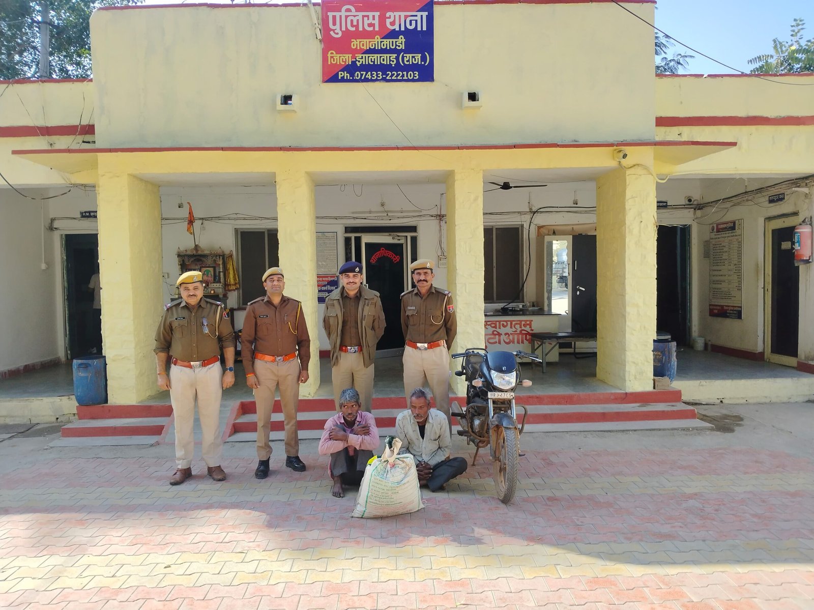 जिला पुलिस अधीक्षक अमित कुमार (आईपीएस) ने बताया कि अवैध मादक पदार्थ तस्करो के विरूद्व जिला स्तर पर विशेष अभियान चलाया जा रहा है अभियान मे अधिक से अधिक प्रभावी कार्यवाही करने हेतु जिले के सभी थानाधिकारीयो काे थाना स्तर पर टीम गठित कर आपराधियो की धर पकड हेतु निर्देशित किया गया है जिसको लेकर पुलिस थाना भवानीमंडी टीम द्वारा अवैध मादक पदार्थ तस्करी के खिलाफ कार्यवाही करते हुये 2 अभियुक्त गणों प्रहलाद सिह और बालु काे गिरफ्तार कर अभियुक्तगणाे के कब्जे से अवैध मादक पदार्थ गांजा को जप्त किया जा कर तस्करी के परिवहन में प्रयुक्त वाहन एक मोटर साईकिल काे जप्त करने में सफलता मिली।