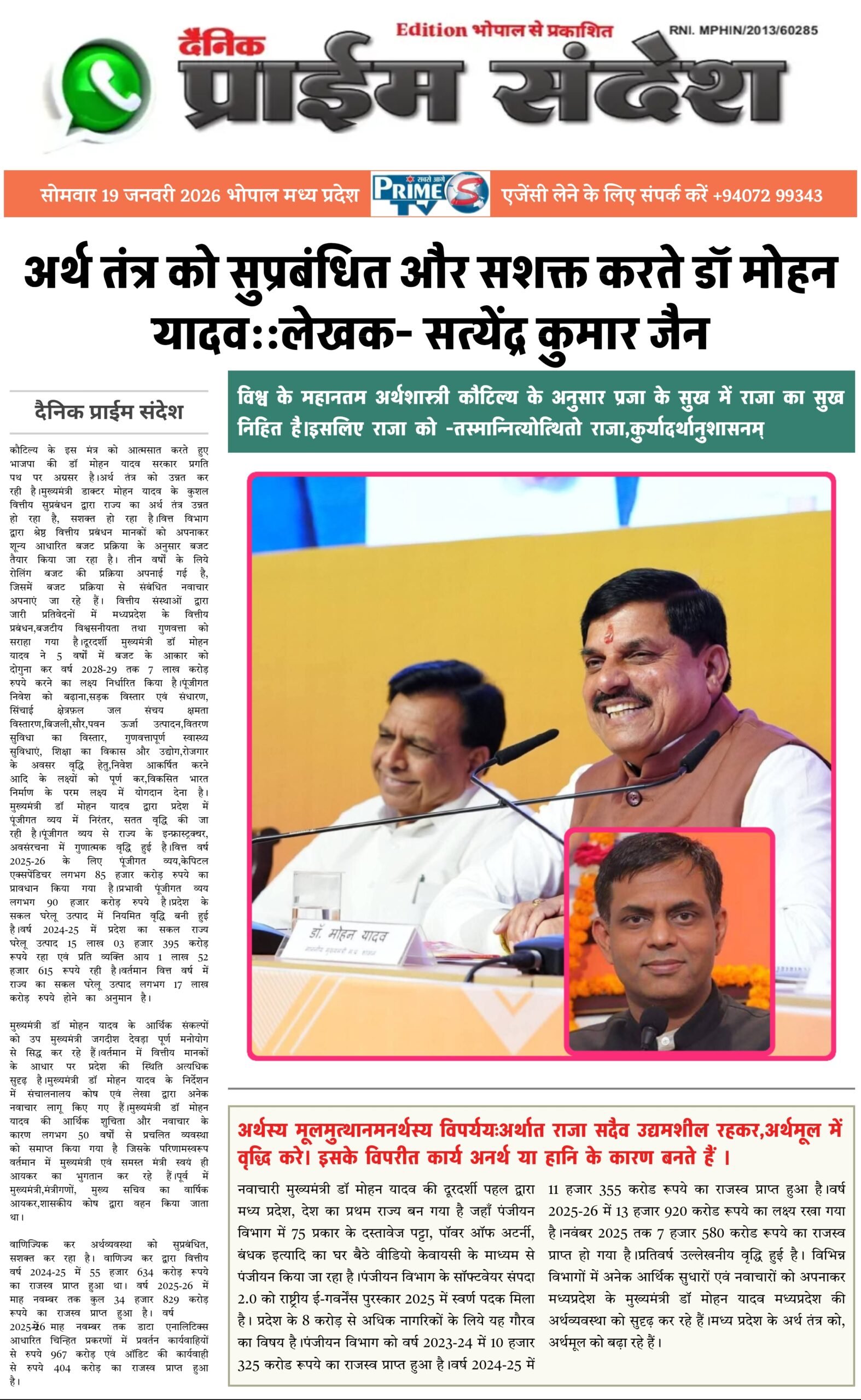 अर्थ तंत्र को सुप्रबंधित और सशक्त करते डॉ मोहन यादव::लेखक- सत्येंद्र कुमार जैन
