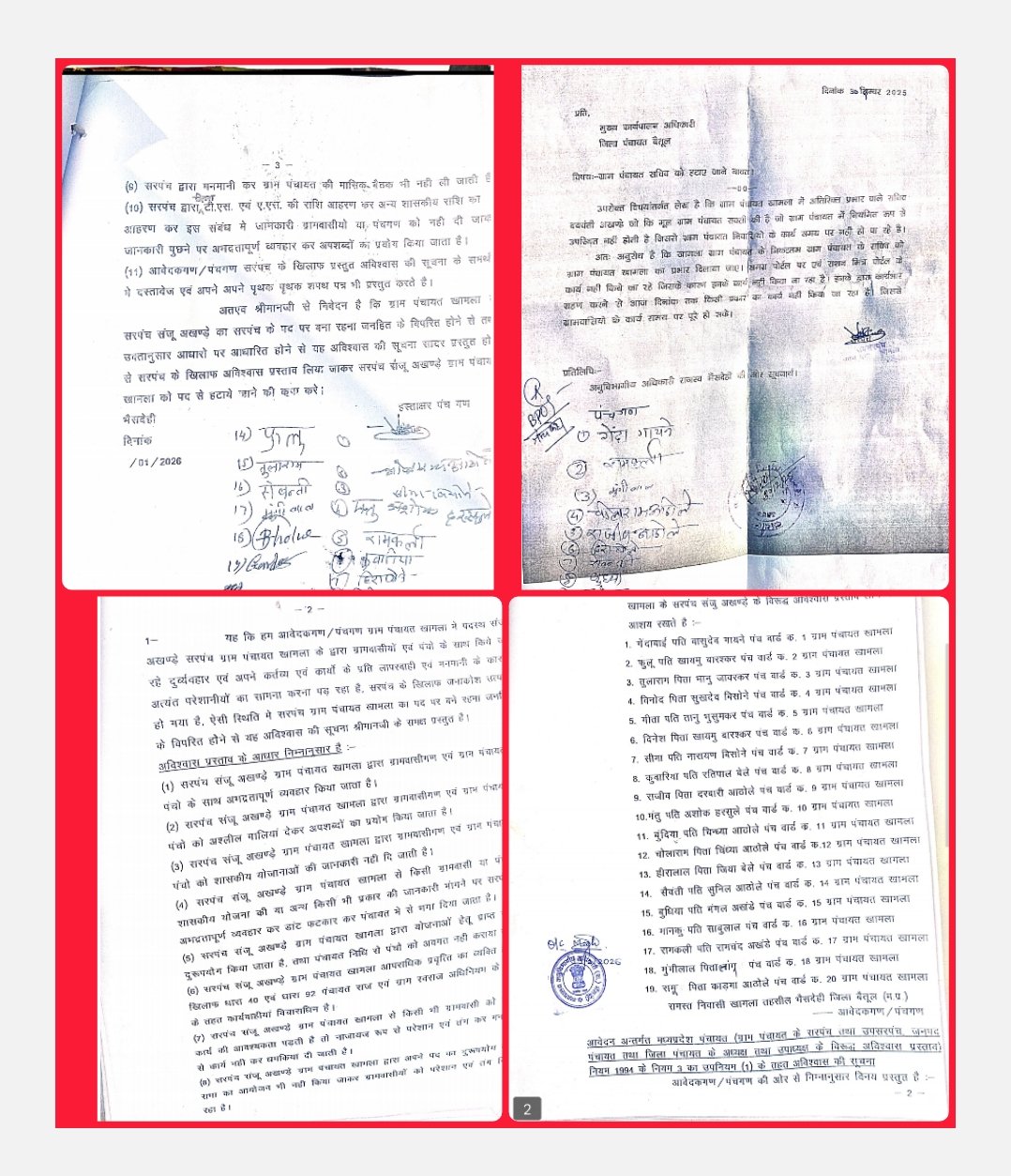 ग्राम पंचायत खामला में सरपंच के भ्रष्टाचार के खिलाफ घमासान* *पंचायत के 19 पंचों ने सरपंच के खिलाफ एसडीएम को सौंपा अविश्वास प्रस्ताव*