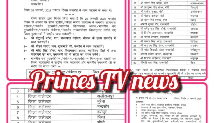 26 जनवरी पर मध्यप्रदेश के जिलों में मंत्री और अधिकारी करेंगे ध्वजारोहण