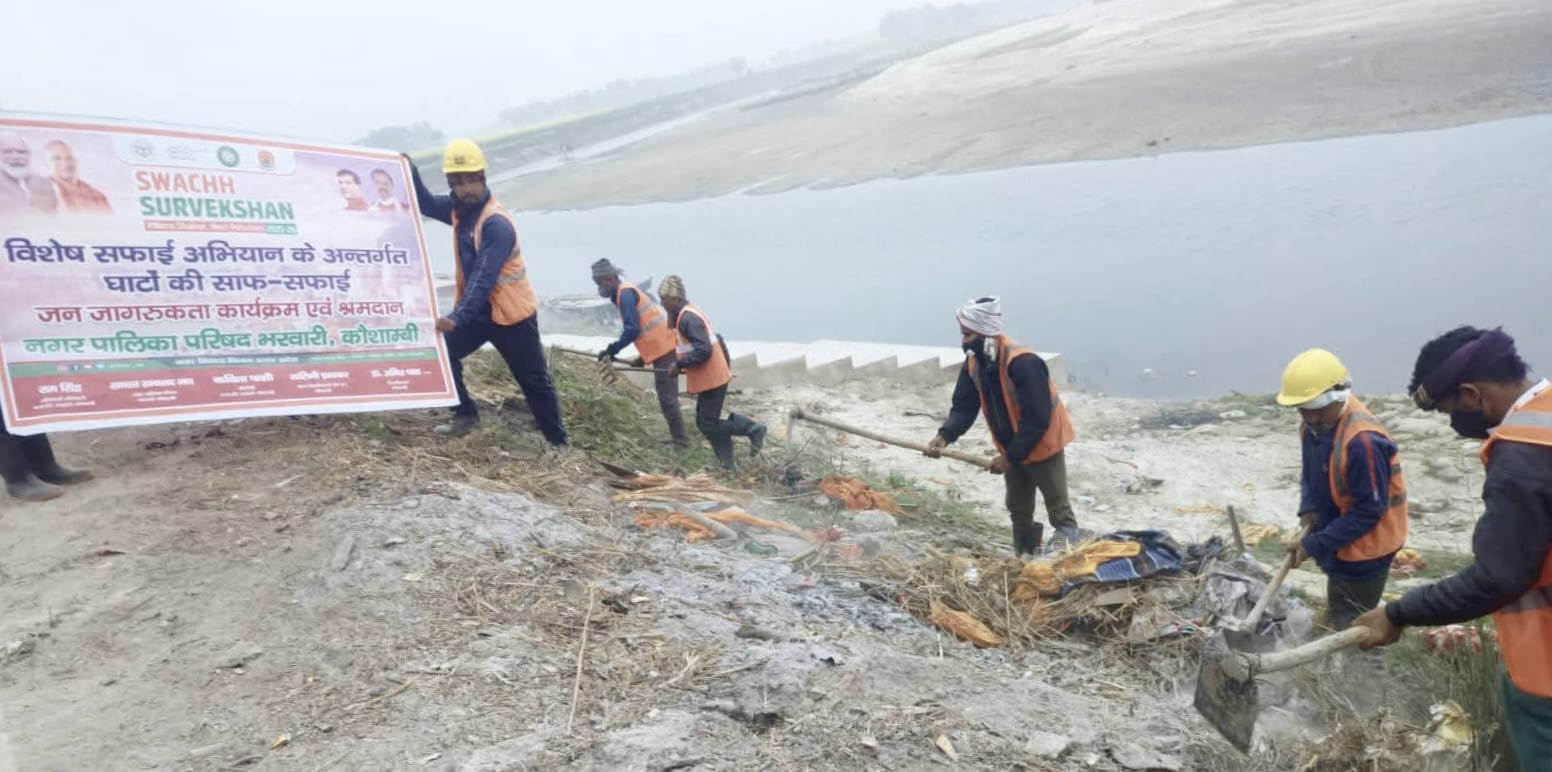 कौशाम्बी/भरवारी: नगर क्षेत्र के वार्ड नंबर 19 धर्मराज नगर के पल्हाना गंगा घाट पर शुक्रवार को स्वच्छ भारत मिशन नगरीय के तहत ‘स्वच्छ बसन्त अभियान’ सफलतापूर्वक चलाया गया।