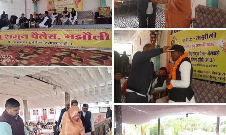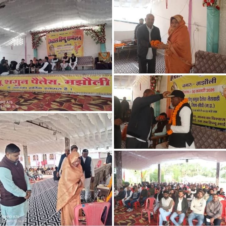 हिन्दू सनातन धर्म की गरिमा, हिंदू समाज में एकता, सांस्कृति संरक्षण, युवाओं में सामाजिक जागरूकता लाकर समाज व सांस्कृतिक विरासत को सुदृढ़ बनाए रखने के उद्देश्य से “जात-पात की करो विदाई हम सब हैं हिंदू भाई-भाई” के तर्ज पर देश प्रदेश व जिले के साथ मझौली खंड में भी हिंदू सम्मेलन आयोजित किया जा रहे हैं। इसी कड़ी में आज 30 जनवरी को नगर क्षेत्र मझौली के शीलू शगुन पैलेस में विशाल हिंदू सम्मेलन सकल हिंदू समाज नगर क्षेत्र मझौली के सानिध्य में संपन्न हुआ। जहां मुख्य वक्ता प्रशांत कुमार विभाग प्रचारक सीधी/सिंगरौली विभाग, नारी शक्ति के रूप में समाजसेवी नागेन्द्र सिंह कन्हाई की धर्म पत्नी पूर्व सरपंच ग्राम पंचायत क्षेत्र देवरी साधना सिंह,ज्योतिष पुरोहित वीरेंद्र शुक्ला,जनजातीय प्रमुख बाल करण बैगा, मंचासीन रहे।