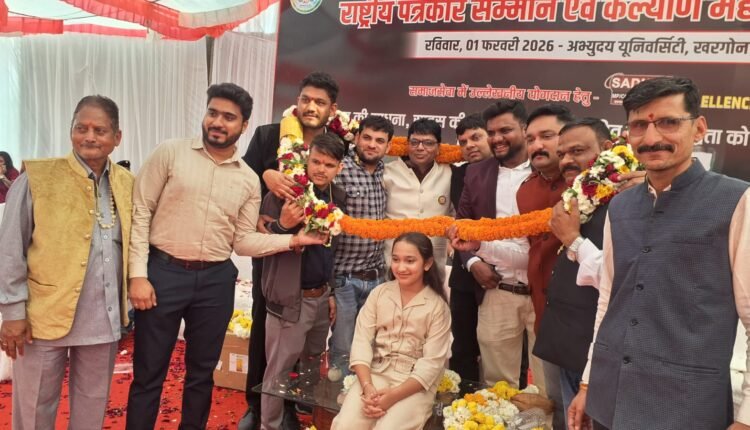 खरगोन जिला मुख्यालय पर अभ्युदय युनिवर्सिटी केंपस में भारतीय पत्रकार संघ ऐ आई जे का राष्ट्रीय पत्रकार सम्मान समारोह कल्याण महोत्सव रविवार 1 फरवरी 2026,को आयोजन सम्पन्न हुआ कार्य क्रम में मुख्य अतिथि के रूप में
