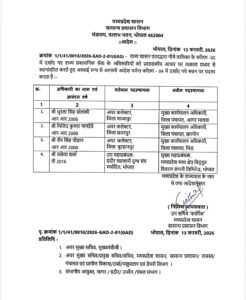 भोपाल, 13 फरवरी 2026। मध्यप्रदेश शासन सामान्य प्रशासन विभाग द्वारा शुक्रवार को प्रशासनिक आधार पर राज्य प्रशासनिक सेवा के अधिकारियों के तबादले संबंधी आदेश जारी किए गए। आदेश के तहत तीन जिलों में जिला पंचायतों के मुख्य कार्यपालन अधिकारियों (CEO) की नई पदस्थापना की गई है, वहीं एक अधिकारी को ऊर्जा विभाग में महत्वपूर्ण जिम्मेदारी सौंपी गई है।