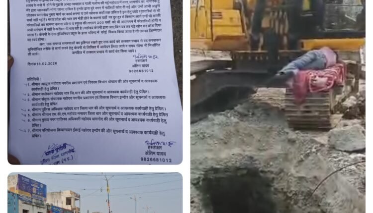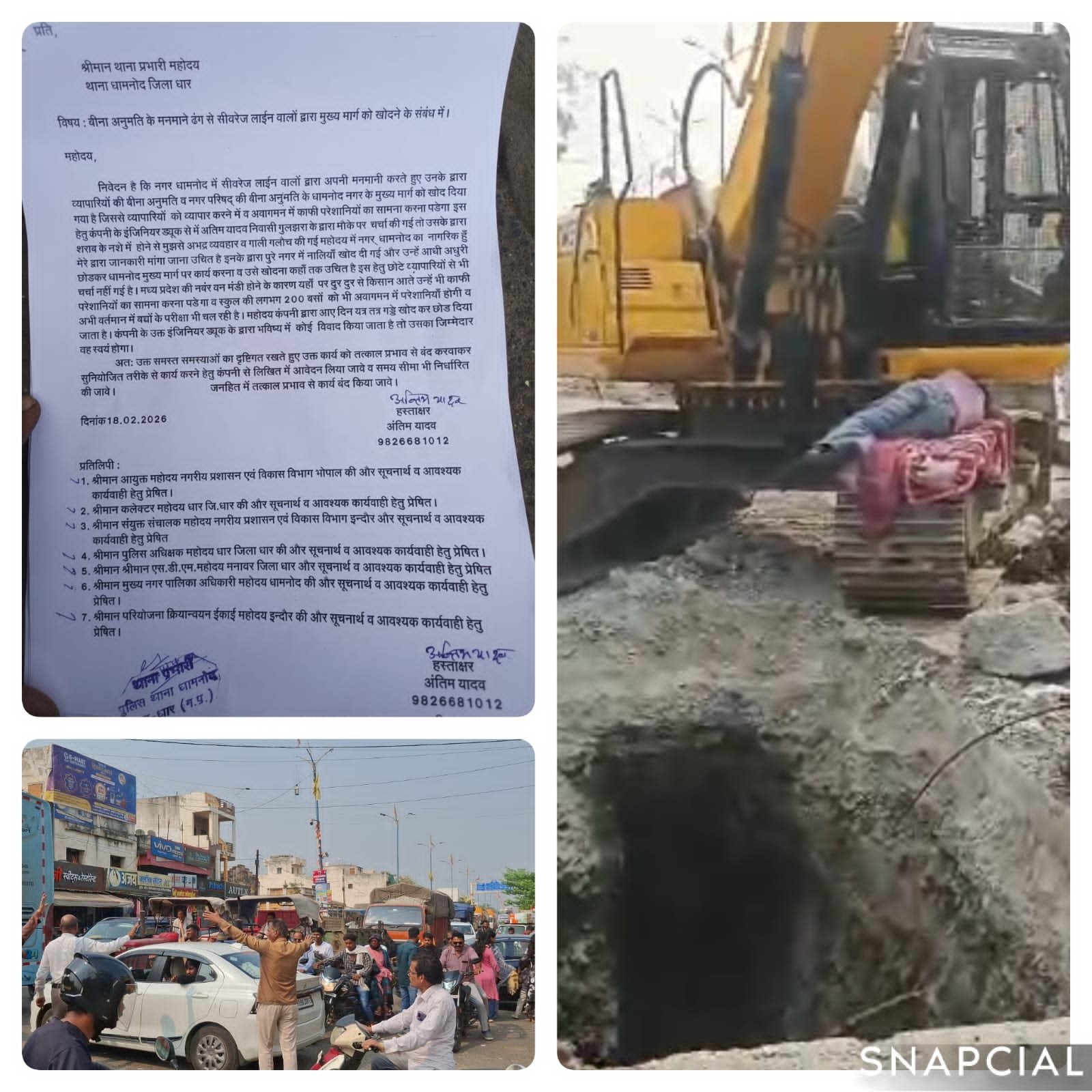 धामनोद के महेश्वर चौराहे पर सिवरेज खुदाई से हालात बेकाबू