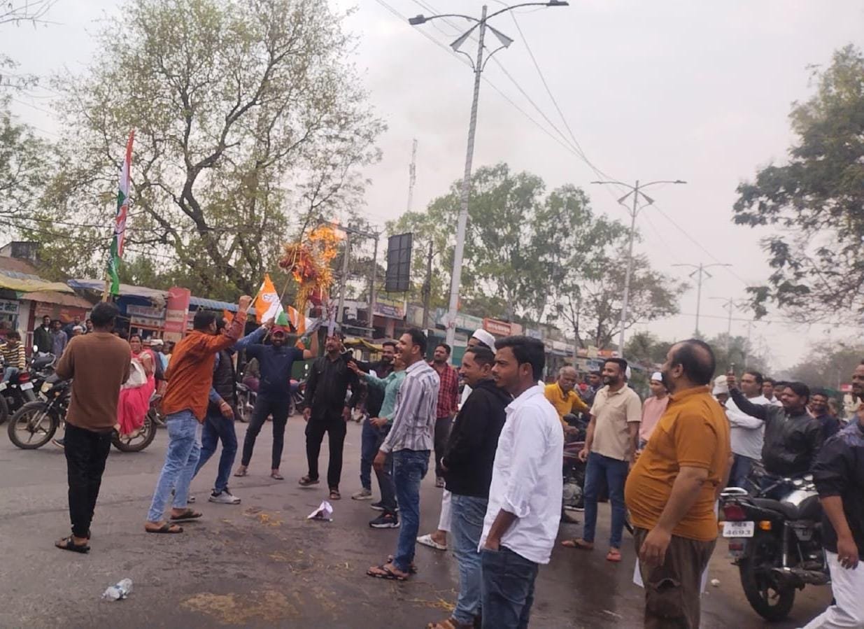 भैंसदेही। प्रदेश कांग्रेस कमेटी के निर्देश पर ब्लॉक कांग्रेस कमेटी भैंसदेही द्वारा ब्लॉक अध्यक्ष पंकज रानू ठाकुर के नेतृत्व में प्रदेश की भाजपा सरकार की नीतियों के खिलाफ जमकर नारेबाजी करते हुए मंत्री कैलाश विजयवर्गीय,राजेन्द्र शुक्ल और विजय शाह का पुतला दहन कर विरोध-प्रदर्शन किया गया।