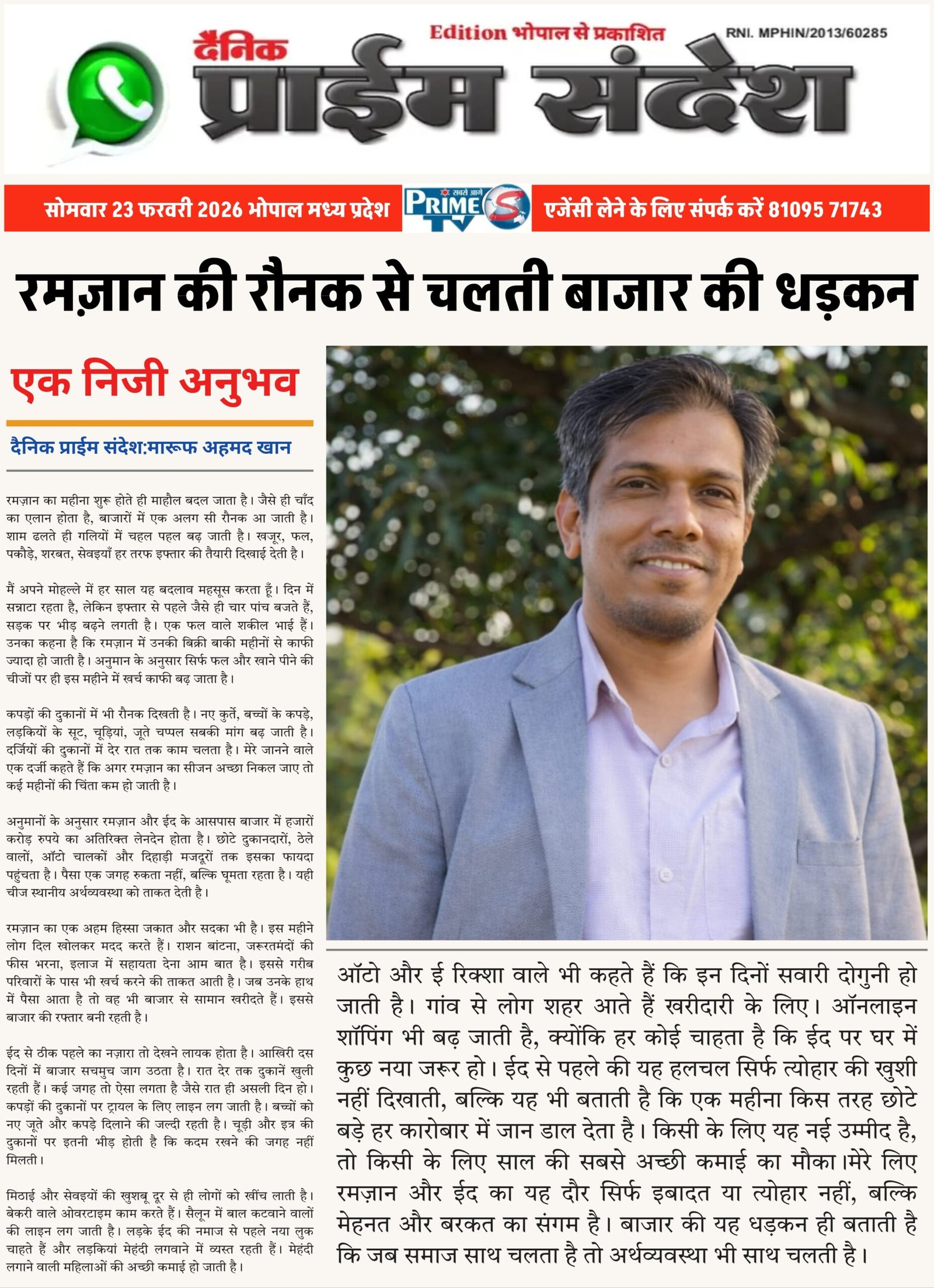 मेरे लिए रमज़ान और ईद का यह दौर सिर्फ इबादत या त्योहार नहीं, बल्कि मेहनत और बरकत का संगम है। बाजार की यह धड़कन ही बताती है कि जब समाज साथ चलता है तो अर्थव्यवस्था भी साथ चलती है।