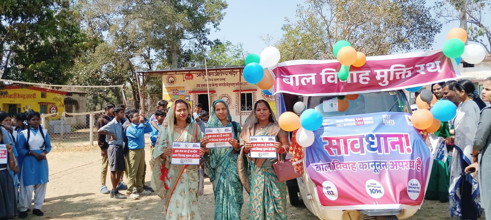 जिला पंचायत उपाध्यक्ष श्रीमती वंदना राजवाड़े, उप सरपंच सुनीता महेंद्र राजवाड़े, एवं नागरिक जनों के द्वारा बाल विवाह रथ को हरी झंडी दिखाकर रवाना किया गया।