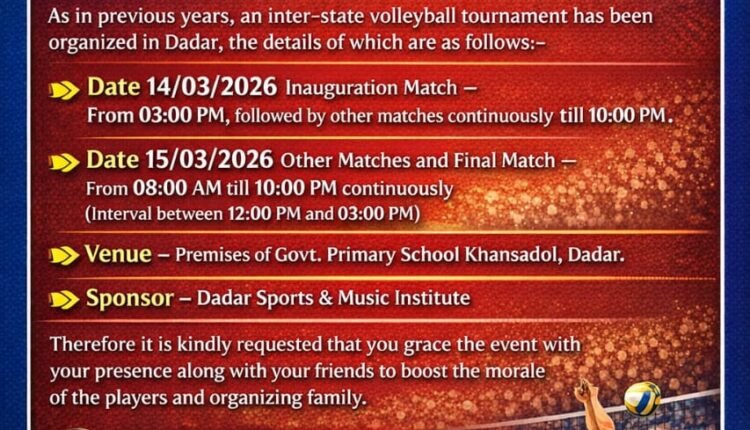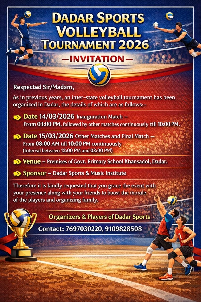 * दादर में दो दिवसीय अंतर्राज्यीय वालीबॉल प्रतियोगिता कल से*