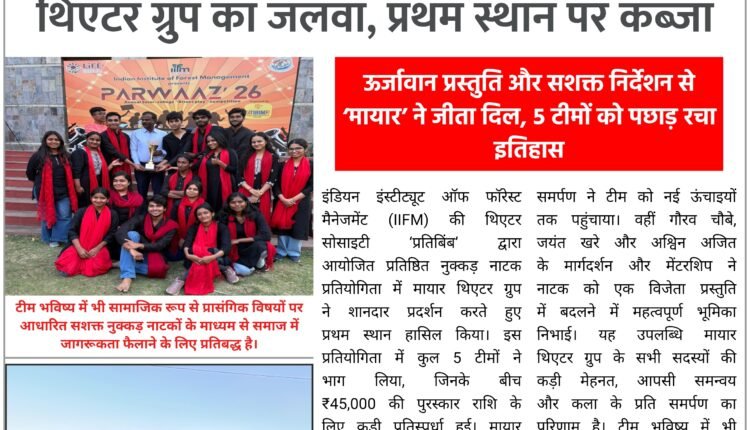 IIFM की नुक्कड़ नाटक प्रतियोगिता में मायार थिएटर ग्रुप का जलवा, प्रथम स्थान पर कब्जा