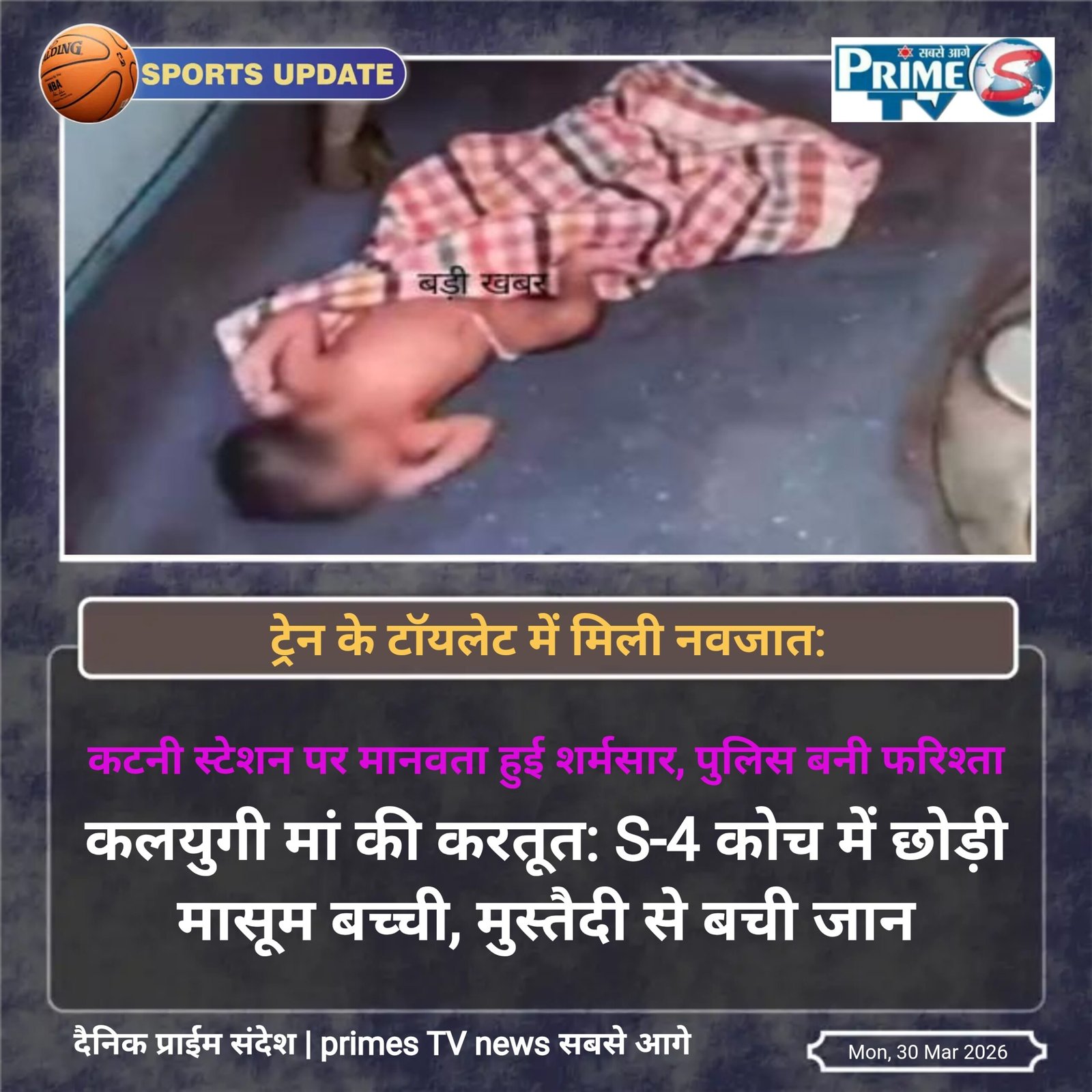 ट्रेन के टॉयलेट में मिली नवजात: कटनी स्टेशन पर मानवता हुई शर्मसार, पुलिस बनी फरिश्ता