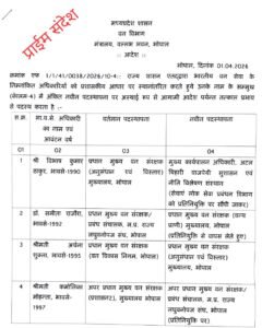 भोपाल, 1 अप्रैल 2026।मध्यप्रदेश शासन के वन विभाग ने बुधवार को भारतीय वन सेवा (IFS) के वरिष्ठ अधिकारियों के तबादले के आदेश जारी किए। मंत्रालय, वल्लभ भवन, भोपाल से जारी आदेश के अनुसार यह फेरबदल प्रशासनिक आधार पर तत्काल प्रभाव से लागू किया गया है।