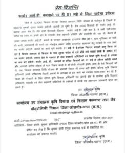 जांजगीर-चांपा – जिले में 123061 किसान पी.एम. किसान सम्मान निधि योजना में पंजीकृत है जिसमें से 96679 कृषको द्वारा फार्मर आई.डी. बनायी जा चुकी है। शेष 26382 किसानो की फार्मर आई. डी. बनाया जाना शेष है। शेष सभी हितग्राही जिनका फार्मर आई.डी. नही बना है, वे सभी एग्री-स्टेक पोर्टल पर स्वंय या अपने क्षेत्र के पटवारी, सेवा सहकारी समिति और नजदीकी सी. एस. सी. सेन्टर में जाकर अपना फार्मर आई.डी. बनाने के पश्चात आवश्यक दस्तावेज जैसे (बी-1, ऋण पुस्तिका या पर्ची की कापी, आधारकार्ड की कापी एवं मोबाईल नम्बर आदि) दस्तावेज सत्यापन हेतु पटवारी के पास जमा कर फार्मर आई.डी. बनाने का कार्य पूर्ण करावे। 01 मई से ई-उर्वरक वितरण प्रणाली लागु किया जा रहा हैं जिसके माध्यम से किसान के पास भुइंया पोर्टल में दर्ज बोये गये फसल रकबे के आधार पर एवं फार्मर आई.डी. नम्बर देने के पश्चात ही सेवा सहकारी समितियों एवं निजी कृषि केन्द्रों से उर्वरक का क्रय कर सकेगे। फार्मर आई. डी. बनवाने से वंचित किसानों को 01 मई से उर्वरक खरीदी करने और आगामी खरीफ मौसम में धान विक्रय करने में भी होगी परेशानी होगी। साथ ही ऐसे किसानो को पी. एम. किसान सम्मान निधि योजना की आगामी किस्त भी प्राप्त नही होगी। वरिष्ठ कृषि विकास अधिकारी अपने अधिनस्थ मैदानी अमलो के माध्यम से इस कार्य का व्यापक प्रचार-प्रसार कर रहे हैं। किसी भी परेशानी के लिए वरिष्ठ कृषि विकास अधिकारी एवं आपके क्षेत्र के ग्रामीण कृषि विस्तार अधिकारी, पटवारी एवं सेवा सहकारी समितियों के प्रबंधको से संपर्क कर आवश्यक जानकारी प्राप्त कर सकते हैं।