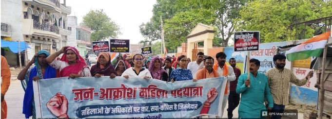 कौशाम्बी/भरवारी: नारी शक्ति वंदन अधिनियम के समर्थन में बृहस्पतिवार को महिलाओं ने जन-आक्रोश महिला पदयात्रा मूरतगंज बाजार में निकाली। भाजपा नगर अध्यक्ष कविता पासी के नेतृत्व में पदयात्रा शुरू हुई ।इस दौरान कांग्रेस और समाजवादी पार्टी के खिलाफ नारेबाजी भी की गई। है। पदयात्रा की शुरुआत ब्लाक परिसर मूरतगंज से हुई, जो प्रमुख चौराहों से होते हुए चिरौंजी लाल गेस्ट हाउस तक पहुंची। महिलाओं ने हाथों में तख्तियां और बैनर लेकर प्रदर्शन किया। कार्यक्रम के दौरान विपक्षी दलों पर हमला बोलते हुए कहा कि कांग्रेस और समाजवादी पार्टी ने हमेशा महिलाओं के अधिकारों का विरोध किया है।