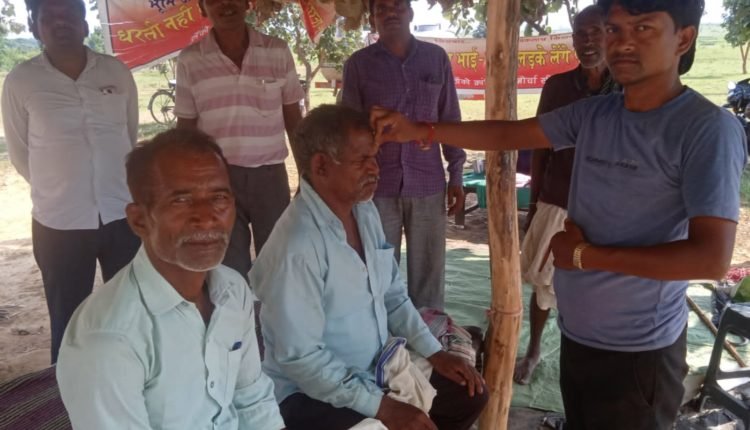 टोंको-रोंको-ठोंको क्रांतिकारी मोर्चा के अगुआई में मूसामूड़ी में किसानों द्वारा की जा रही भूख हड़ताल उन्नीसवें दिन भी जारी रही। आज भूख हड़ताल के उन्नीसवें दिन 6 अक्टूबर 2023 को क्रमिक भूख हड़ताल में आम आदमी पार्टी के सहायक सचिव तिलकराज सिंह के द्वारा लालन सिंह गोड़ और लालमन सिंह गोड़ को अधिग्रहित भूमि की मिट्टी कि तिलक लगाकर अनशन पर बैठाया गया। भूख हड़ताल स्थल पर उपस्थित किसानों के समक्ष अपनी बात रखते हुए तिलकराज सिंह ने कहा कि अंग्रेजों द्वारा भी आदिवासी किसानों के शोषण में कई कानूनी दावं पेच का प्रयोग किया जाता रहा है। जिसके तहत जंगलों को राज्य की संपत्ति घोषित करके आदिवाशियो को जंगल से अलग किया जाता था। अंग्रेजों द्वारा शोषणकारी राजस्व प्रणाली और आदिवासी उत्पादों पर कराधान की शुरुआत की जिसके परिणामस्वरूप भूमि पर आदिवासियों के पारंपरिक अधिकार समाप्त हो गए। तिलकराज सिंह ने कहा आदिवासी समुदाय हमेशा से ही वन संसाधन पर निर्भर रहा है। आदिवासियों के लिए वन के संसाधन न केवल आर्थिक जीविका प्रदान करते हैं बल्कि सामाजिक और सांस्कृतिक रूप से जीवन जीने का एक माध्यम भी रहा है। आदिवासी पेड़ों से ईंधन के लिए लकड़ी, इमारती लकड़ी, तेंदू-पत्ते, महुआ-फूल, चार-चिरौंजी और जड़ी-बूटियां आदि उपयोग में लेते रहे हैं।