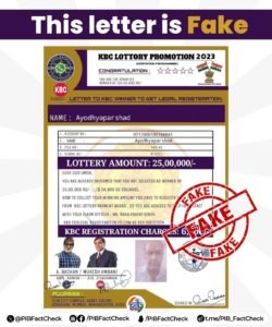 आपको बताते चले कि वर्तमान समय में कौन बनेगा करोड़पति का सीजन सोनी टीवी पर प्रसारित किया जा रहा है जिसको लेकर जाल साज सक्रिय हो गए हैं और फर्जी तरीके की वेबसाइट बनाकर उन परफॉर्म अपलोड कर सीधे-साधे ग्राहकों को अपनी जाल में फंसा रहे हैं इसीलिए गवर्नमेंट आफ इंडिया की तरफ से फैक्ट चेक किया गया है ।