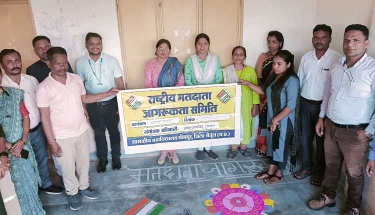 भीमपुर/शासकीय महाविद्यालय भीमपुर में राष्ट्रीय मतदाता जागरूकता कार्यक्रम के तहत रंगोली प्रतियोगिता का आयोजन किया गया। प्रभारी प्राचार्य डॉ बबीता राय के मार्गदर्शन में मतदाता जागरूकता समिति के संयोजक सहायक प्राध्यापक श्री शंकर सातनकार द्वारा मतदाता जागरूकता कार्यक्रम के विभिन्न प्रतियोगिताओं का आयोजन किया जा रहा है। आज डॉ संगीता पाल एवम् डॉ रजनी मर्सकोले के नेतृत्व मे रंगोली प्रतियोगिता आयोजित की गई जिसमें संस्था की बीएससी प्रथम वर्ष की छात्रा मीरा द्वारा प्रथम स्थान प्राप्त किया गया।इस कार्यक्रम को सफल बनाने में सहायक प्राध्यापक श्री लेखराम दरसीमा, डॉ भावना पारखे, डॉ नीलेश धुर्वे, Dr नीतू सिंह,श्री जी एल प्रजापति, श्री दशरू यदुवंशी एवम् सम्पूर्ण स्टॉफ उपस्थित रहा।