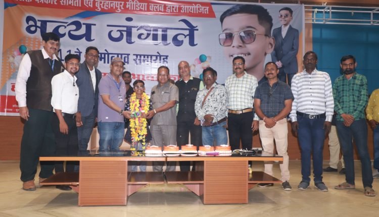 बुरहानपुर। सशक्त पत्रकार समिति के प्रदेश अध्यक्ष उमेश जंगाले के सुपुत्र भव्य जंगाले का 11वा जन्मोत्सव भव्यता के साथ होटल उत्सव में केक काटकर बड़ी धूमधाम एवं हर्षोल्लास के साथ मनाया गया। जन्मोत्सव के अवसर पर आगामी विधानसभा चुनाव में मददाताओ को शत प्रतिशत मतदान करने की शपथ भी दिलाई गई। वहीं गरीबों को फल वितरण किये गये, तत्पश्चात पर्यावरण को बढ़ावा देने के उद्देश्य से शौकत गार्डन में वृक्षारोपण किया गया। उमेश जंगाले ने बताया कि नई पीढ़ी में हमें पर्यावरण में जागरूकता लाने के लिए प्रयासरत रहना चाहिए, ताकि आने वाली पीढ़ी पेड़, पौधे का महत्व समझ सके, क्योंकि यह हमें ऑक्सीजन देते हैं और वातावरण को शुद्ध बनाए रखते हैं। इसलिए अपने जन्मदिन पर पेड़ जरुर लगाए। वहीं उन्होंने कहा कि नर सेवा, नारायण सेवा की सोच रखते हुए मेरे सुपुत्र के हस्ते मैंने गरीबों को फल वितरण कराया। मानव जीवन में आए हैं, तो गरीबों की मदद करना अत्यंतआवश्यक है। वहीं उन्होंने कहा कि वर्षभर में भी मेरे द्वारा गरीबों के हितार्थ, समर्पित भावना रखते हुए उनकी मदद करने हेतु प्रयासरत रहता हूं। श्री जंगाले ने बताया कि आगामी विधानसभा चुनाव में शत प्रतिशत मतदान हो इसके लिए लोगों को प्रेरित करेंगे। इस अवसर पर बुरहानपुर म्युजिक क्लब के गायकों ने गीतों पर एक से बढ़कर एक प्रस्तुती दी। शेमारू टीवी के प्रसिद्ध राष्ट्रीय कवि रमेश चंद्र शर्मा (धुआंधार) ने अपनी कविताओं से लोगों को खूब गुदगुदाया। कार्यक्रम का सफल संचालन दिलीप कुमार मोरे सर ने किया। इस दौरान मेट्रो हॉस्पिटल के संचालक सैय्यद नदीम, गुड हॉस्पिटल के संचालक विजय सुगंधी, विनोद सुगंधी, यूनाइटेड प्रेस ऑर्गेनाइजेशन के प्रदेश अध्यक्ष रिज़वान अंसारी, सशत पञकार संगठन के प्रदेश उपाध्यक्ष राजेश जाधव, समाजसेवी, वरिष्ठ पत्रकार नरेश चौकसे, पत्रकार पवन शिवहरे समाज सेवी, मोहम्मद भाई सहित भारी संख्या में शहर के जनप्रतिनिधि, गणमानीय नागरिक, सहित उपस्थित रहे। जनमानस ने बर्थडे बॉय को बधाई, आशीर्वाद एवं उपहार से किया सम्मानित दिया।