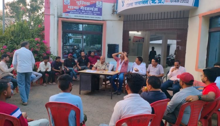 नगर गैरतगंज में दशहरे के उपलक्ष में बैठक हुई थाना प्रांगण में