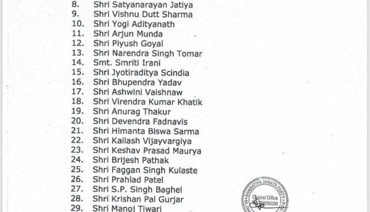 2023 MP विधानसभा चुनाव : भारतीय जनता पार्टी के स्टार प्रचारक की सूची
