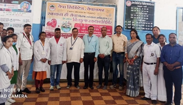 3.0 के अंर्तगत आयोजित दो दिवसीय नि:शुल्क स्वास्थ्य परीक्षण शिविर के दूसरे दिन नि:शुल्क रक्त परीक्षण एवं रक्तदान शिविर का आयोजन किया गया। इस शिविर में नेपा लिमिटेड के महाप्रबंधक (संचालन) अजय गोयल द्वारा दुर्घटना सहित अन्य आपातकालीन परिस्थितियों में जीवन रक्षा हेतु रक्तदान के महत्व को रेखांकित किया गया। नेपा लिमिटेड चिकित्सालय के मुख्य चिकित्सा अधिकारी डॉक्टर अनिल कुमार झंझडीवाल द्वारा युवाओं को नियमित समय अंतराल पर रक्तदान करने के लिए प्रेरित किया गया। स्व. नंदकुमार सिंह चौहान शासकीय जिला चिकित्सालय, बुरहानपुर की वरिष्ठ प्रयोगशाला सहायिका रेखा ओमकार ने महिलाओं एवं युवतियों से रक्तदान करने के लिए बढ-चढ़ कर हिस्सा लेने का आह्वान किया। लैब टेक्नीशियन सुभाष चौहान ने रक्तदान से जीवनदान की बात को बताया। नेपा लिमिटेड के जन संपर्क अधिकारी संदीप ठाकरे से प्राप्त जानकारी के अनुसार स्वच्छता के तीसरे चरण के इस विशेष अभियान में दो दिवसीय नि:शुल्क स्वास्थ्य शिविर के दूसरे दिन शुक्रवार को आयोजित नि:शुल्क रक्त परीक्षण एवं रक्तदान शिविर में नेपा मिल कर्मचारियों और नागरिकों द्वारा प्रात: 10 बजे से दोपहर 3 बजे तक कुल 16 यूनिट रक्त दान किया गया। आयोजित रक्तदान शिविर में नेपा लिमिटेड चिकित्सालय की ओर से डॉक्टर यशवंत पाटिल, डॉक्टर मसूद मशरुवाला, डॉक्टर राजश्री मोरे, लैब टेक्नीशियन कैलाश वर्मा सहित शासकीय जिला चिकित्सालय, बुरहानपुर के ब्लड बैंक के स्टाफ और बिम्ट्स नर्सिंग कॉलेज, बुरहानपुर की प्रशिक्षु नर्सिंग स्टाफ द्वारा अपनी सेवाएं दी गई।