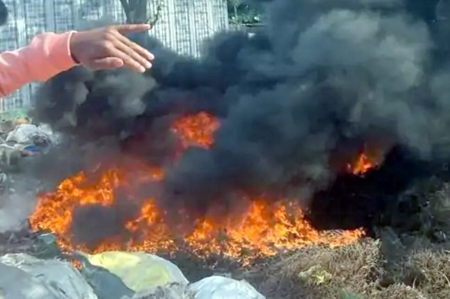 प्लास्टिक के कबाड़ में आग