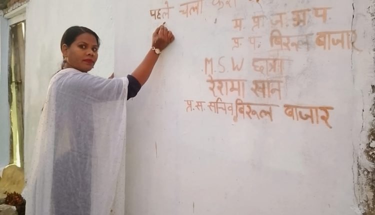मुलताई तहसील क्षेत्र के प्रभात पट्टन ब्लाक के बिरूल बाजार मे गली गली दीवारो पर मतदान जागरूकता संदेश लिखकर मतदान जागरुकता अभियान चलाया।एमएसडब्ल्यू छात्रा तथा ग्राम विकास प्रस्फुटन समिति सचिव रेशमा खान ने ग्राम बिरूल बाजार मे दीवारो पर श्लोगन लिखकर मतदाता जागरूकता अभियान चलाया। मध्यप्रदेश जनअभियान परिषद कि ब्लाक समन्वयक राधा बरोदे के नेतृत्व जगह जगह चौपाल लगाकर मतदाताओं को 100% मतदान करने के लिए प्रेरित किया।तथा समझाया कि मतदान हमारा महत्वपूर्ण अधिकार है।इसलिये सारे काम छोड़कर हम मतदान करने जाये एवं लोकतंत्र को मजबूत बनाने मे सहयोग करे।