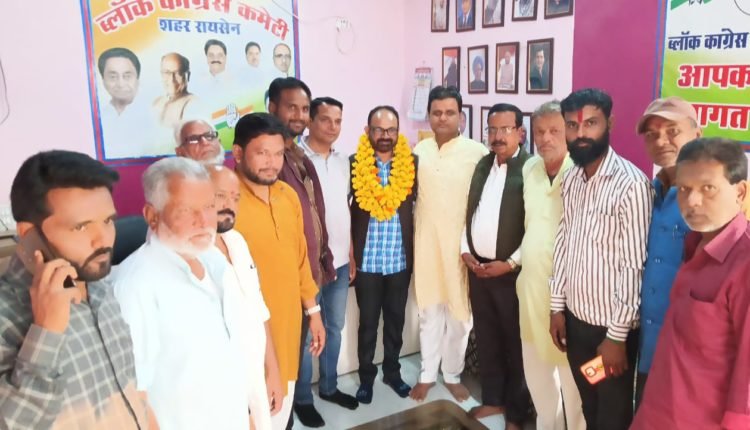 शहर ब्लॉक कांग्रेस रायसेन ने किया फूल माला पहनाकर किया स्वागत दी बधाई।