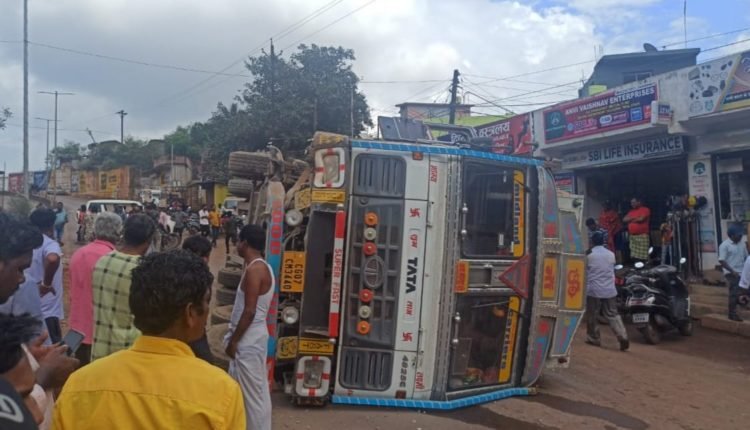 लिक्विड सीमेंट से भरी वाहन अनियंत्रित हो कर मुख्य सड़क पर पलटी