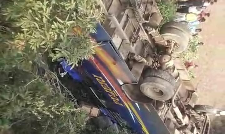 अनियंत्रित बस पलटी, एक की मृत्यु कई घायल।आधा सैकड़ा से अधिक लोग थे सवार।