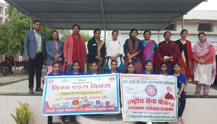 हरदा । लाल बहादुर शास्त्री व्यावसायिक अध्ययन महाविद्यालय हरदा के रेड रिबन क्लब एवं रासेयो इकाई के विद्यार्थियों ने आज डाॅ. बी.आर.अंबेडकर शासकीय उत्कृष्ट विद्यालय हरदा में विश्व एड्स दिवस मनाया।
