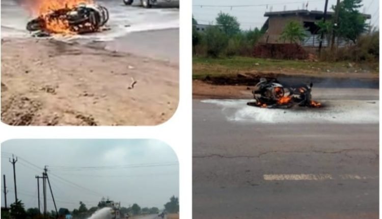 चलती एक्टिवा में लगी आग बाल-बाल बचे सवार ।