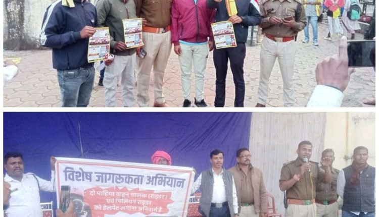 बैतूल । पी.टी.आर.आई. पुलिस मुख्यालय भोपाल द्वारा चलाए जा रहे हैं विशेष जागरूकता अभियान के तहत यातायात पुलिस बैतूल द्वारा आज दिनांक को शिवाजी ऑडिटोरियम में आयोजित सांस्कृतिक कार्यक्रम समलित होने आए ग्रामीण अंचल एवं शहरी क्षेत्र से आदिवासी युवक युवतियों को यातायात नियमों के प्रति जागरूक किया गया सड़क सुरक्षा के उपाय बताए गए दो पहिया वाहन पर चालक एवं पिलियन राइडर को हेलमेट अवश्य लगाने के महत्व को बताया गया चार पहिया बांध में सीट बेल्ट के महत्व को बताया साथी जिन व्यक्तियों का सड़क दुर्घटना में घायल या मृत्यु हो जाती हैं उनके परिवार पर क्या-क्या परेशानियां का सामना करना पड़ता है इस संबंध में ही बताया गया कार्यक्रम में सम्मिलित हुए जिले के विभिन्न क्षेत्रों से आदिवासी युवक युवतियों को यातायात थाने द्वारा पंपलेट वितरण कर हमेशा यातायात नियमों का पालन करने की समझाएं दी गई साथ ही गुड सेमरिटन स्कीम के वारे जानकारी सड़क दुर्घटना में घायलों को हॉस्पिटल या ट्रामा सेंटर पहुंचने वाले नेक व्यक्ति को नगद 5000 रूपए पुरस्कार दिया जाएगा की जानकारी भी दी गई