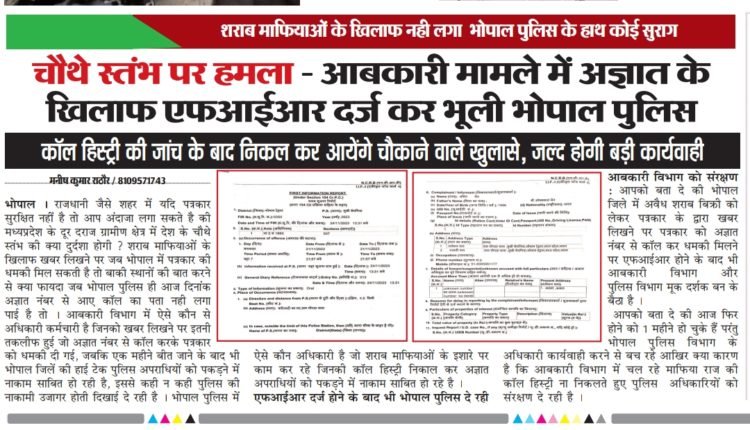 चौथे स्तंभ पर हमला – आबकारी मामले में अज्ञात के खिलाफ एफआईआर दर्ज कर भूली भोपाल पुलिस