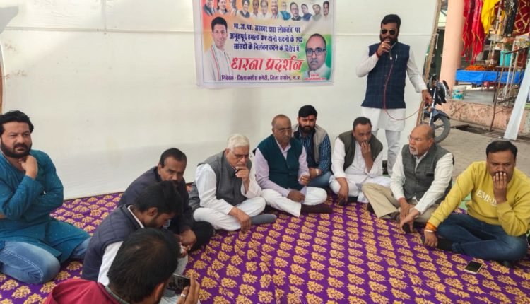 भाजपा की केंद्र सरकार द्वारा अभूतपूर्व हमले कर संसद के दोनों संदनो से 142 सांसदों के निलंबन के विरोध में कांग्रेस के जिला अध्यक्ष मुमताज खान के नेतृत्व में गांधी प्रतिमा के पास बैठे धरने पर कांग्रेस कार्यकर्ताओं मैं केंद्र में बेटी बीजेपी सरकार पर निशान सदा। कांग्रेस जिला अध्यक्ष मुमताज खान ने बताया कि कांग्रेस पार्टी सहित अन्य संगठनों संगठनों ने केंद्र में बैठी भाजपा सरकार के निर्णय के खिलाफ विरोध में धरना प्रदर्शन किया जा रहा है इस धरना प्रदर्शन में कांग्रेस नेता हकीम उद्दीन, जावेद अहमद, युवा कांग्रेस जिला अध्यक्ष विकास शर्मा, संदीप मालवीय, प्रभात चावला सहित अन्य कांग्रेस कार्यकर्ता धरना प्रदर्शन में सम्मिलित रहे