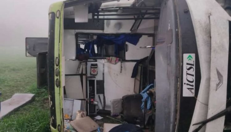 रायसेन के गोपालपुर बायपास में गड्ढे की वजह से बस पलटी,27 या त्रियों को आई मामूली चोंटे 2