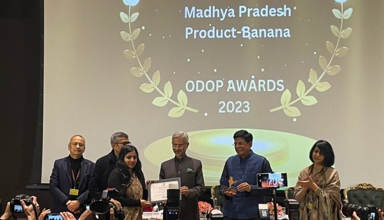 बुरहानपुर/3 जनवरी, 2024/-नव वर्ष-2024, का तीसरा दिन बुधवार बुरहानपुर जिले के लिए नवीन उपलब्धि के रूप में दर्ज हुआ। आत्मनिर्भर भारत के दृष्टिकोण को साकार करने के प्रयास एवं जिले की पहचान एक जिला-एक उत्पाद अंतर्गत मुख्य फसल केले का उत्पादन बढ़ाने, व्यापार बढ़ाने, प्रसंस्करण क्षेत्र में विशेष कार्य करने के लिए आज बुरहानपुर जिले को प्रथम राष्ट्रीय ओडीओपी पुरस्कारों में ‘‘स्पेशल मेंशन अवार्ड-2023‘‘ से नवाजा गया है। नई दिल्ली में आयोजित कार्यक्रम में केन्द्रीय वाणिज्य और उद्योग मंत्री श्री पीयूष गोयल एवं विदेश मंत्री डॉ. एस. जयशंकर ने कलेक्टर सुश्री भव्या मित्तल को पुरस्कार देकर सम्मानित किया।